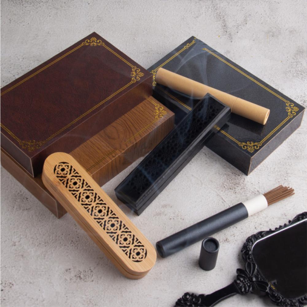 علبة أنيقة خشبية تحتوي على مبخرة ذكية بزوايا بيضاوية.