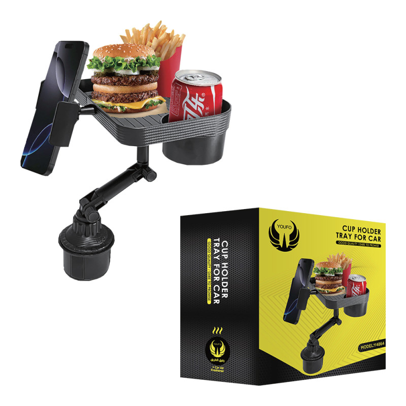اجعل رحلاتك بالسيارة أكثر راحة وتنظيمًا مع حامل الأكواب وصينية الطعام للسيارة من YOUFO. تصميم ذكي يوفر لك مساحة مثالية لوضع وجباتك، مشروباتك، وهاتفك المحمول في متناول يدك. يتم تثبيته بسهولة في حامل الأكواب داخل السيارة، ويتميز بذراع متحركة وقابلة للتعديل لتناسب مختلف الزوايا والمساحات. مثالي للسفر، القيادة اليومية، أو التنقل لمسافات طويلة.