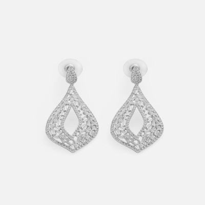 - التفاصيل: حلق بتصميم بشكل دمعة مفرغة و مرصعة بأحجار الزركون البراقة تضفي لمسة من الجاذبية