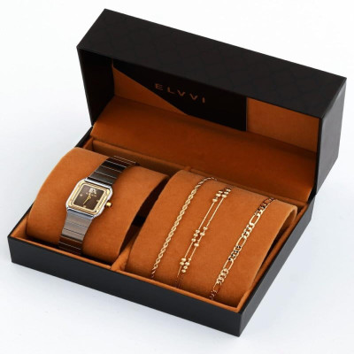 - تفاصيل الأساور: أساور بتصميم أنيق باللون الذهبي .