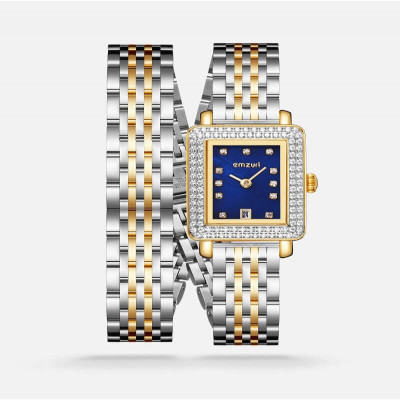 ساعة نسائية من ماركة ايمزوري ، ساعة بتصميم عصري جذاب لتزيدي من جمال وفخامة حضورك في كل الأوقات ، ساعة بسير من الستانلس ستيل باللون الذهبي والفضي بتصميم سوار يلتف على معصمك بأناقه مع إطار عريض ومرصع بفصوص الزركون الملفتة ، ساعة بميناء مستطيل باللون الأزرق وتزينه فصوص الزركون في مكان الأرقام لطله أكثر تفردا ، هذه الساعة ستكون أحد من ساعاتك المفضلة .