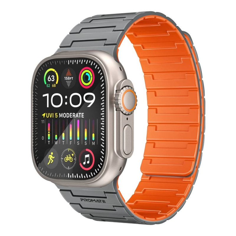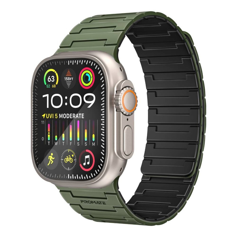 ارفع مستوى تجربة ساعة أبل الخاصة بك مع MagBand-MS من Promate، السوار المثالي الذي يجمع بين الأناقة والفخامة. مصنوع من السيليكون المتين ومغطى بطبقة حماية ضد الأشعة فوق البنفسجية لتعزيز المتانة، ليمنحك راحة وأناقة لا مثيل لها. يتوافق مع جميع أحجام ساعة أبل (42/44/45 مم/49 مم) والطرازات من Series 1 إلى Ultra 2، مما يضمن ملاءمة مثالية وسلسة. بفضل المغناطيسات القوية N52+، يوفر MagBand-MS ثباتًا آمنًا ويسهل تعديله للحصول على ملاءمة دقيقة ومريحة، مما يوفر عليك الوقت والجهد. يتميز هذا السوار بتصميم عصري وبنية قوية تعزز من مظهر الساعة ووظائفها بكل سهولة.